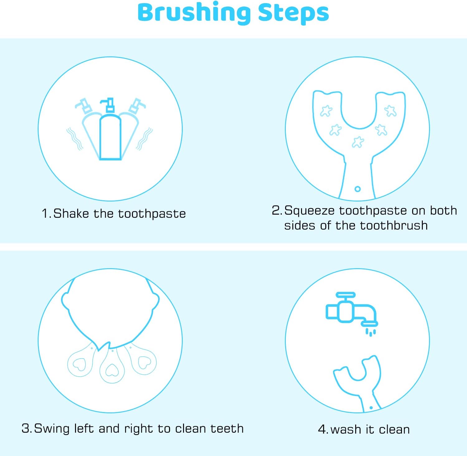 ✅ 360° U-Shaped Brush Head – Cleans all sides of teeth at once, helping kids brush faster and reduce plaque buildup.